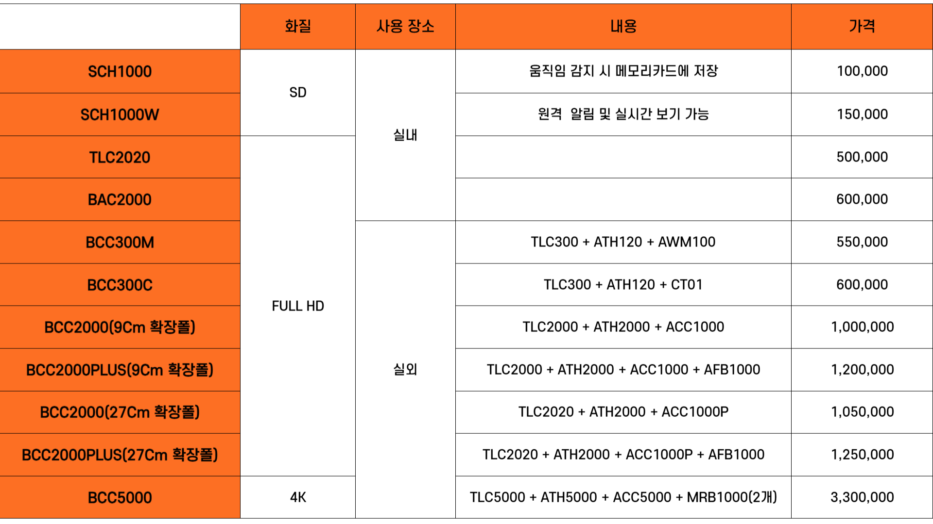 하기 가격표는 현금 가 이며 부가세 포함 가격입니다.